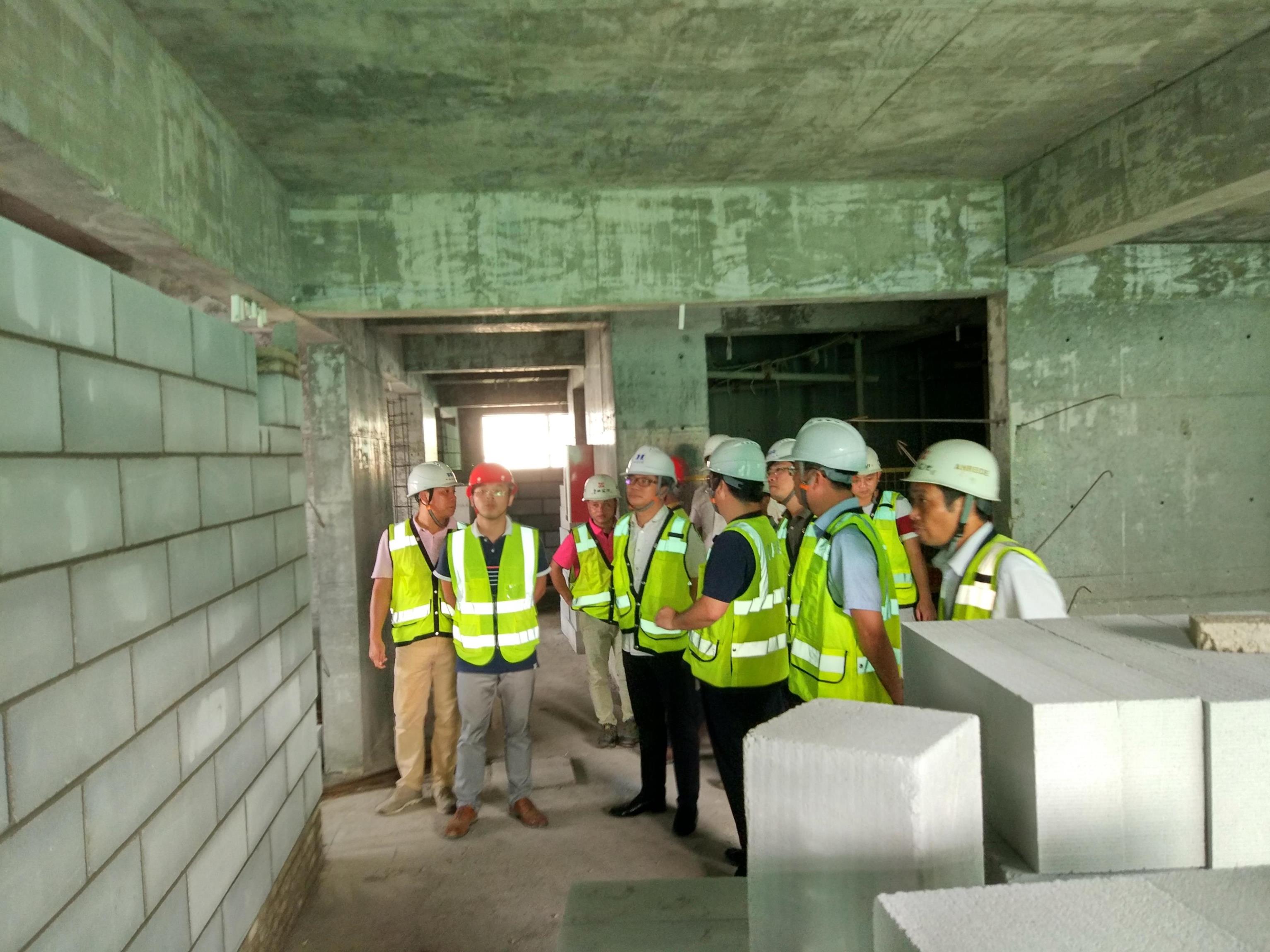 赵总一行首先到项目部办公室,听取了项目各相关负责人关于现场工作的情况汇报,并详细询问了工程进度、工程质量、施工难点和现场安全工作等事宜。在工程总监朱陶园的陪同下,赵总一行一边参观项目工地,一边认真听取相关人员的工作汇报。