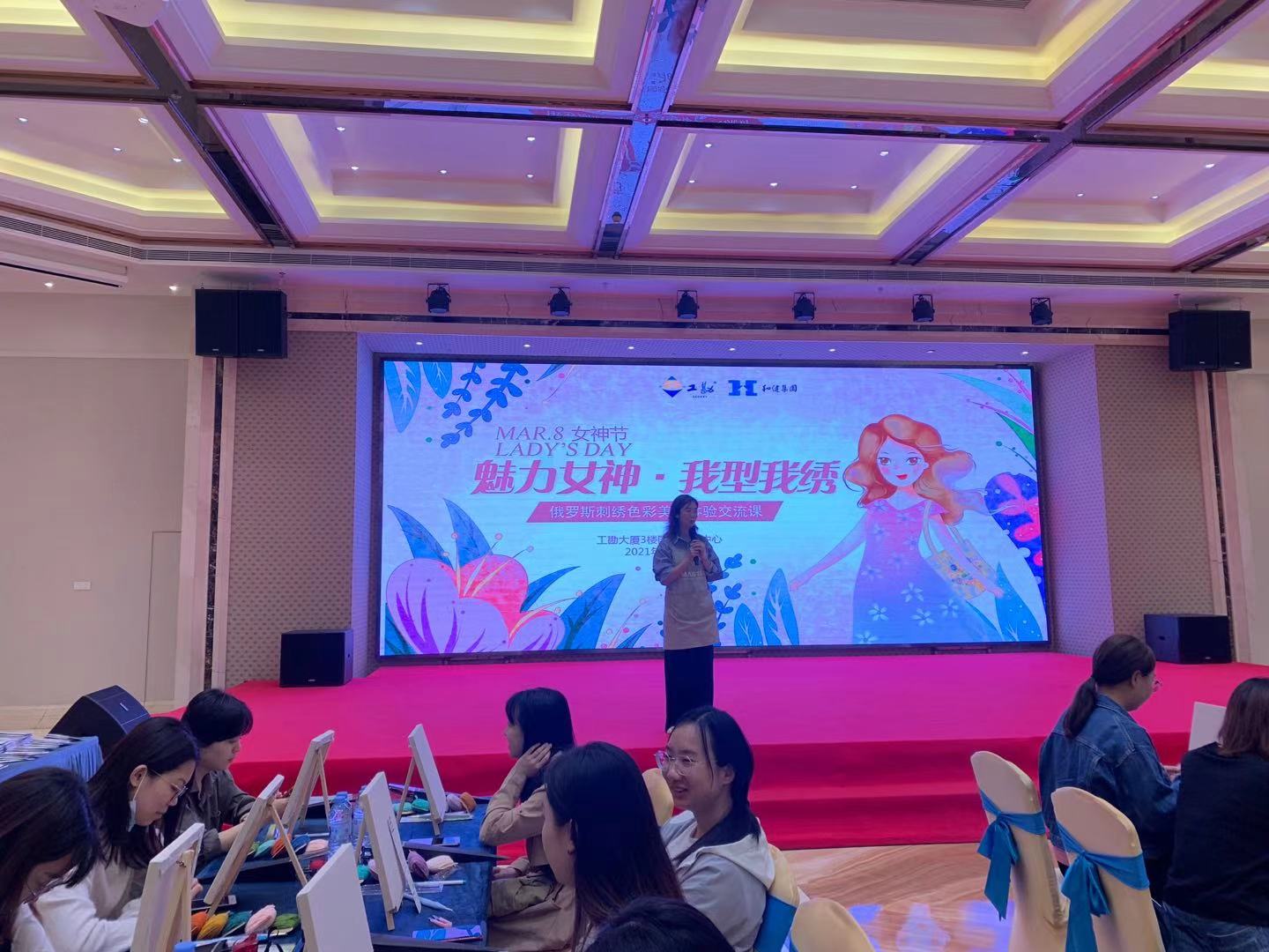 活动上,老师为大家分享了俄罗斯刺绣色彩美学知识及展示了刺绣细节,并引导各位女员工完成图形创作。老师还鼓励大家发挥想象力和创造力,设计出具有个人特色的刺绣作品。