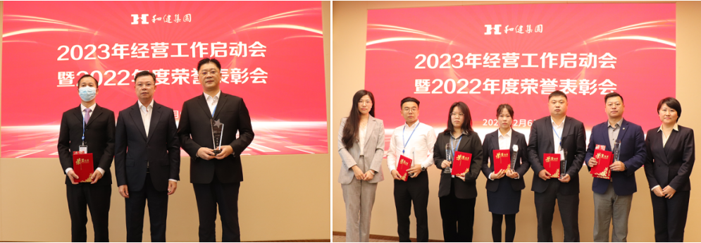 会议第一部分,对在2022年度工作中,表现优异、工作突出的团队及个人予以表彰。集团常务副总裁吴先史宣读表彰决定,2022年度集团共表彰优秀团队1个、优秀中层管理人员5人、优秀员工11人。优秀的团队和个人是集团发展的中坚和基石,通过“榜样”作用带动全体员工尽责担当、奋发向上,在新的一年里共同做出新的贡献。